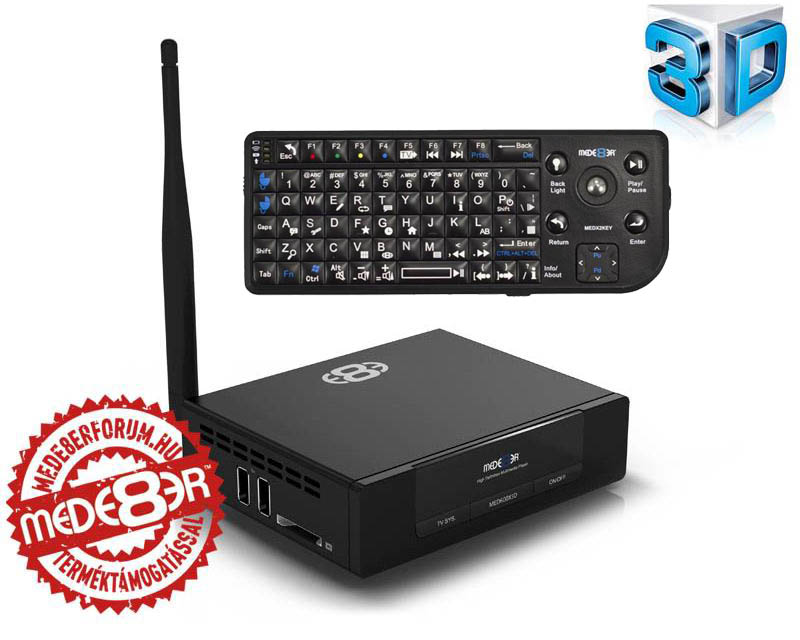 Mede8er MED600X3D-Full Wifis Médialejátszó akciós csomag tartalmazza a Mede8er MEDX2KEY rádiós mini USB billentyűzetét is, amit külön 13 900 Ft-ért kapható. Ennek segítségével sokkal kényelmesebben kezelhetjük médialejátszónkat és jól jön a beépített webböngésző használatakor is.